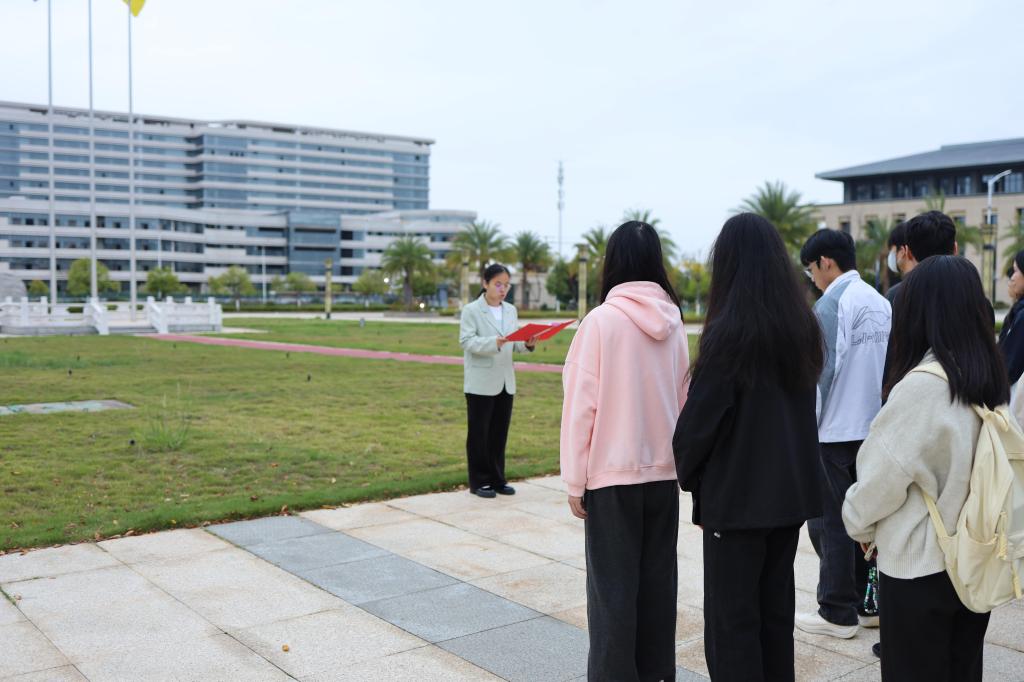 2025年11月10日清晨,理学院于三江校区(东园)中华冶金长廊举办升旗仪式,辅导员肖清梅、各支部党员代表、新一批党员发展对象、各支部入党积极分子及新一批团员发展对象参加此次升旗仪式。