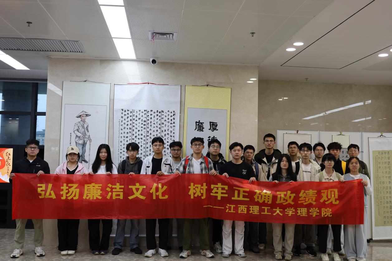 展览现场,一幅幅作品以笔墨传廉韵,以丹青绘清风,将廉洁理念与艺术创作有机融合,主题鲜明、意蕴深远。在书法作品《况钟拒礼诗》前,师生们驻足品读——“清风两袖去朝天,不带江南一寸绵”,深刻感悟江西先贤况钟清正廉洁的高尚品格。不少同学表示,通过沉浸式观展,对“出淤泥而不染”的廉洁精神有了更加直观深刻的认识。