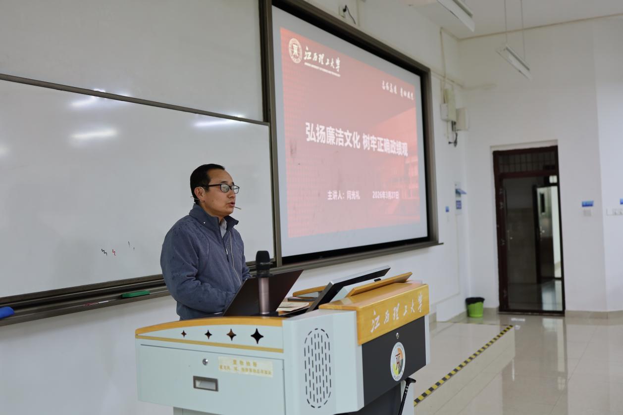 3月27日下午,党课在阅道108教室开讲。闫光礼紧扣习近平总书记关于正确政绩观的重要论述,系统阐释了廉洁文化内涵、新时代政绩观要求及党员廉洁履职基本准则。党课结合高校党风廉政建设新形势,深入剖析了教学科研、学生管理、日常学习等方面的廉洁风险点,通过典型案例和红色廉洁故事,生动讲解廉洁自律的实践路径,引导师生知敬畏、存戒惧、守底线。